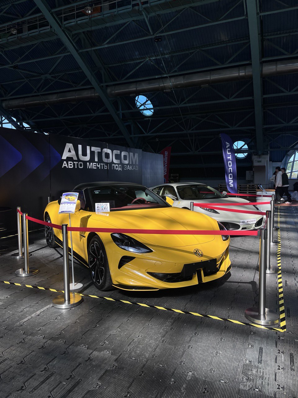 На Тачках мы участвовали с одними из самых ярких автомобилей - желтый кабриолет MG Cyberster и Ferrari F430 цвета бьянко.